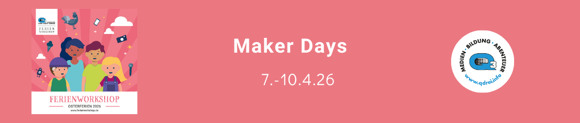 In der offenen (digitalen) Werkstatt der „Maker Days “ können Kinder in verschiedenen kreativen Spaces eigene Ideen umsetzen und Neues ausprobieren. Zur Verfügung stehen Bereiche aus den Themenfeldern Coding, 3D, Making, Radio sowie Tüfteln und Bauen. Gemeinsam oder individuell entstehen dabei kleine Projekte, Experimente oder Prototypen – je nach Interesse und Neugier. Das Ferienprojekt bietet Raum zum Entdecken, Gestalten und Ausprobieren unterschiedlichster Werkzeuge und Materialien. Am Ende der Woche gibt es natürlich eine kleine Abschlusspräsentation für alle Eltern, Großeltern, Geschwister …, bei der alle Ergebnisse gezeigt werden.